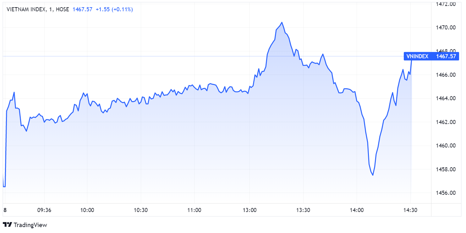 Áp lực chốt lời có xuất hiện về cuối phiên nhưng nhanh chóng bị lực mua hấp thụ. Đồ thị: TradingView. |